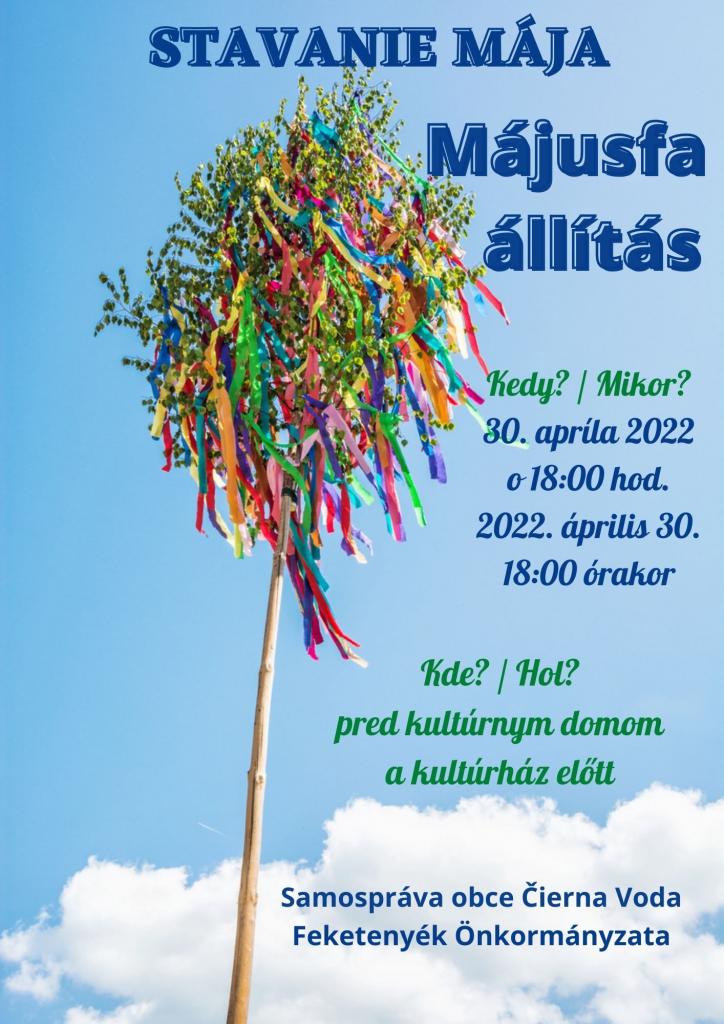 Stavanie mája sa uskutoční 30. apríla 2022 o 18:00 hod. pred kultúrnym domom. Čakáme všetkých a hlavne deti, ktoré nám pomôžu pri výzdobe.