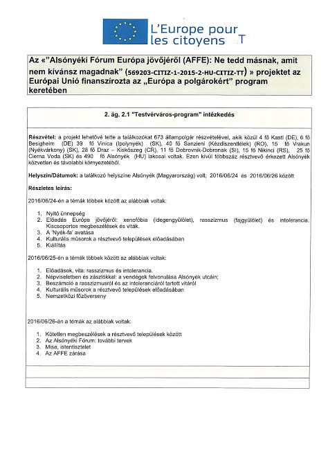 "ALSÓNYÉKI FÓRUM EURÓPA JÖVŐJÉRŐL" 1