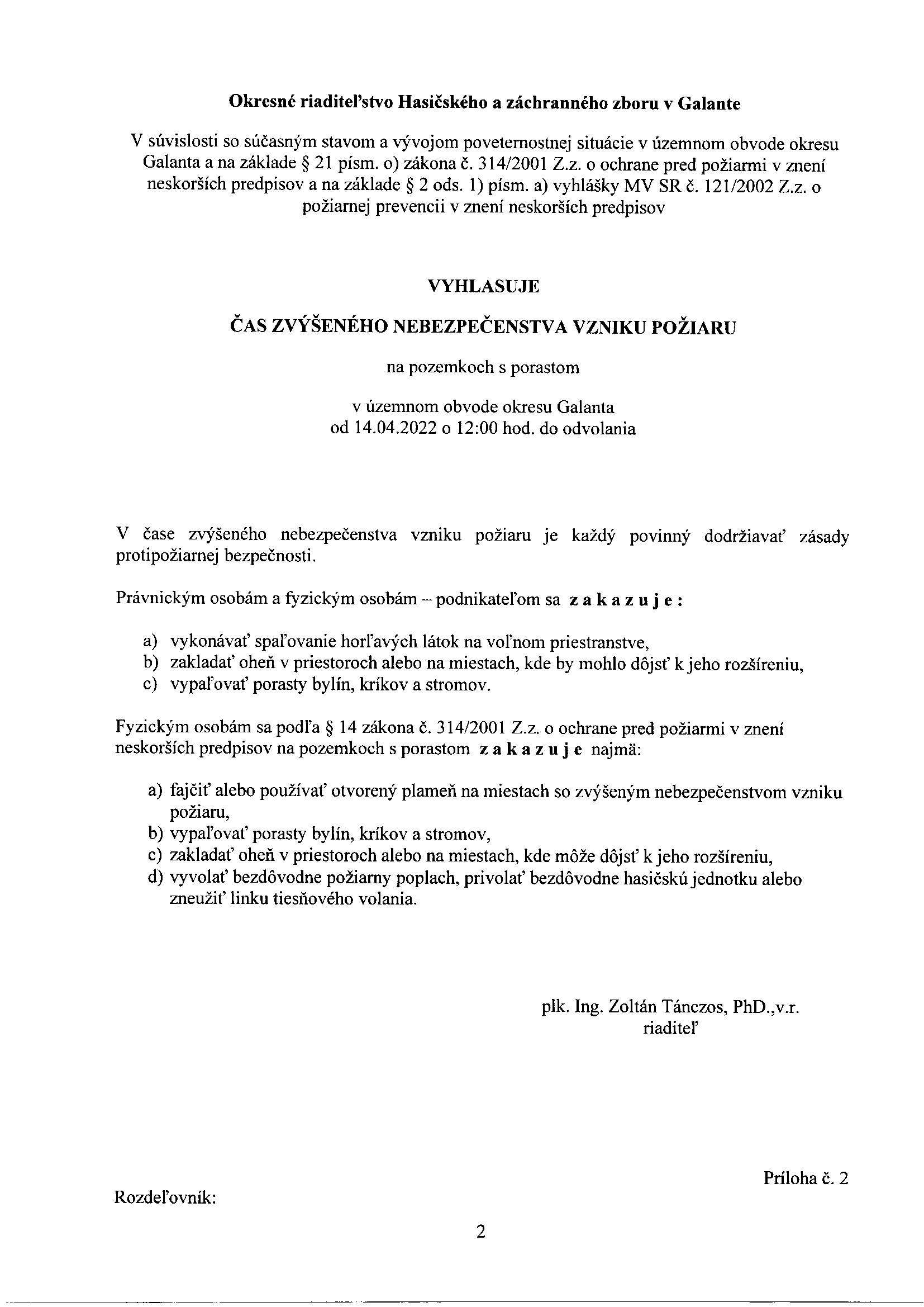 Čas zvýšeného nebezpečenstva vzniku požiaru