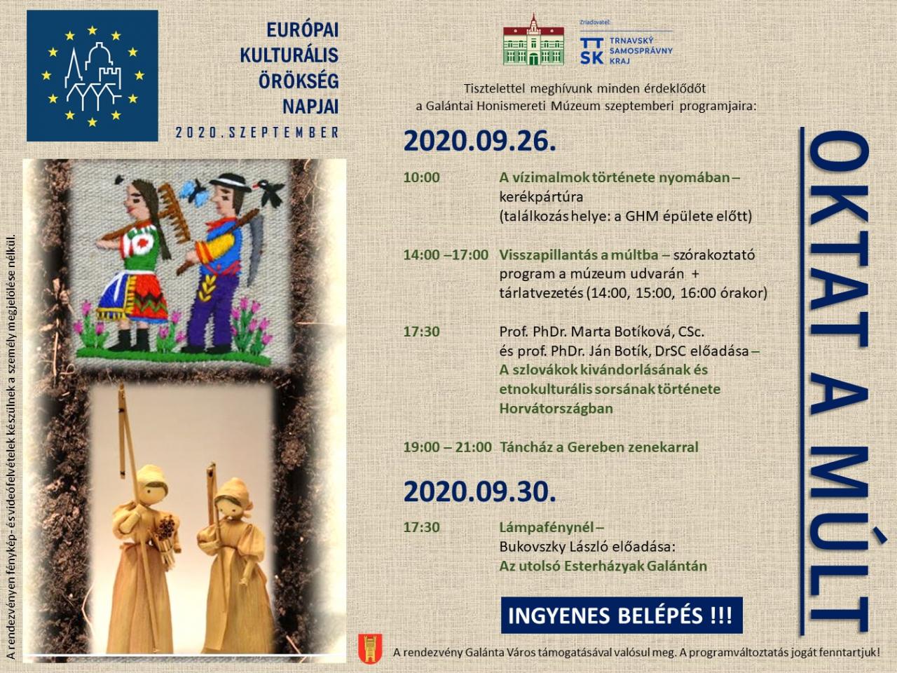Galántai Honismereti Múzeum programjai az Európai Kulturális Örökség Napjai című rendezvény keretén belül