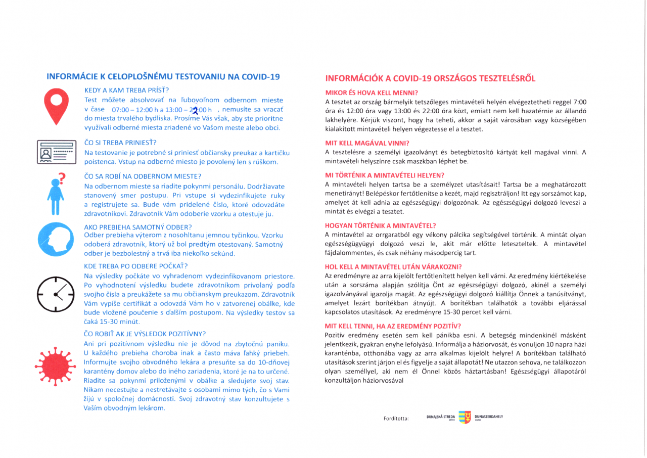 🧪❗️TÁJÉKOZTATÁS A COVID-19 ORSZÁGOS TESZTELÉSÉRŐL