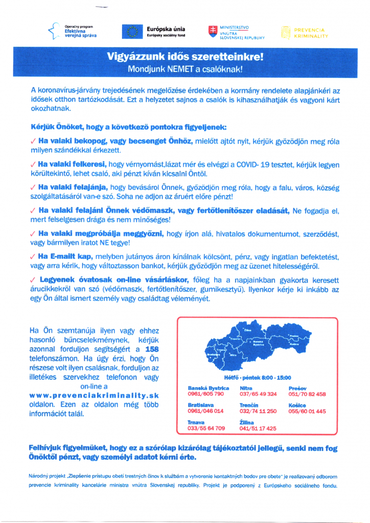 Ochrana seniorov pred podvodmi - Idősek védelme a csalókkal szemben