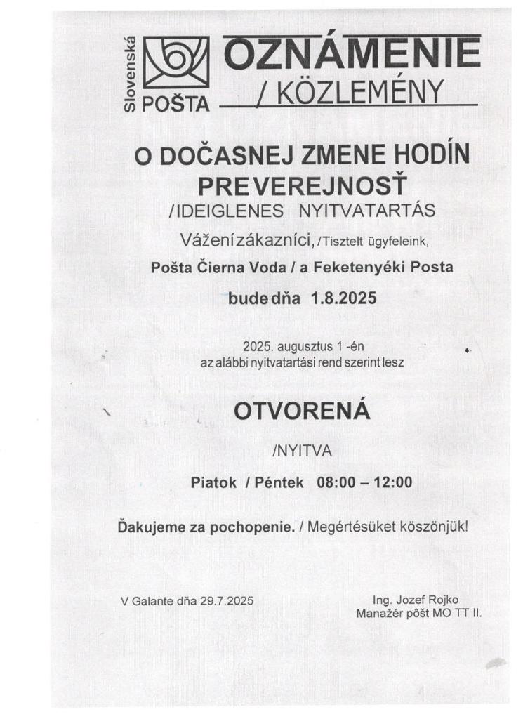 Oznámenie - Értesítés