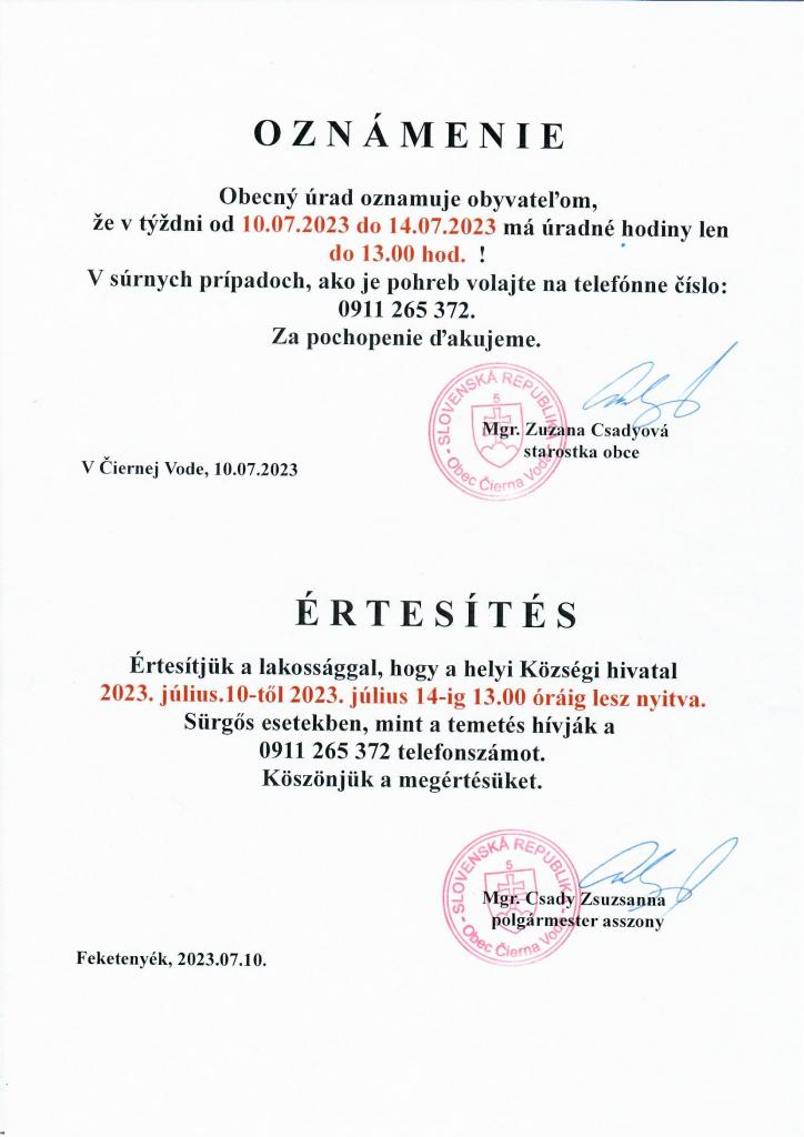 Oznámenie-Értesítés