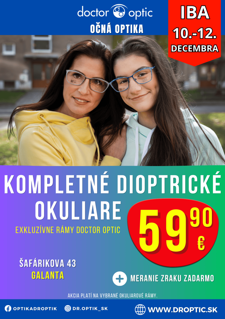 Pozor, vážení spoluobčania! Očná optika Doktor Optik prináša jedinečnú akciu iba od 10. do 12. decembra! Kompletne dioptrické okuliare teraz len za 59,90 eur!