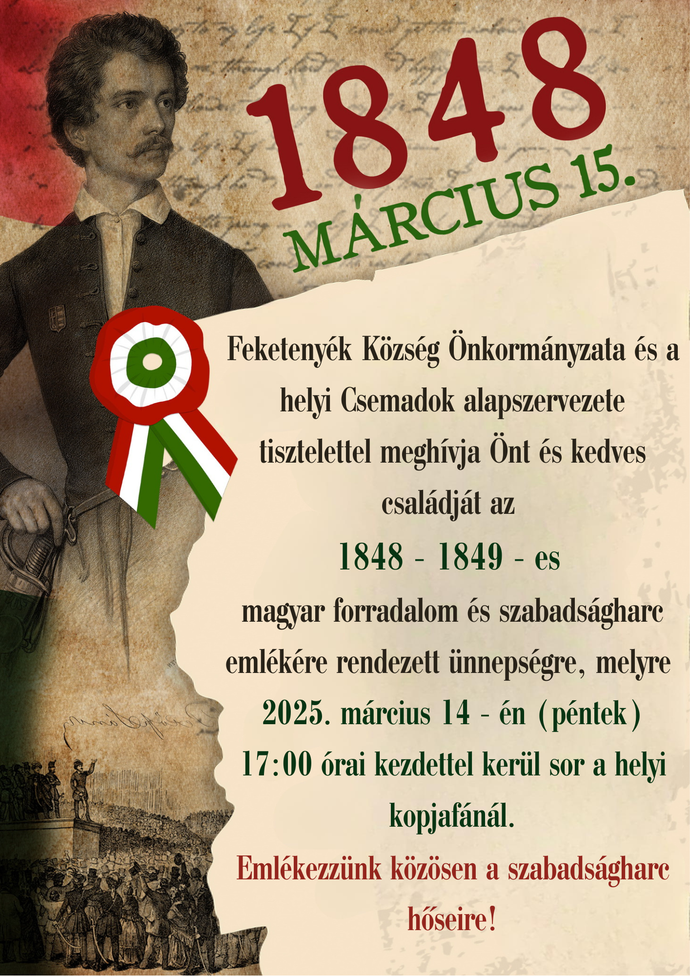 Meghívó - Emlékezzünk közösen az 1848/49-es forradalom és szabadságharc hőseire. "Megtanulom, megőrzöm, tanítom, továbbadom... A szüleim nyelvét a gyerekeim hangján elkopni nem hagyom."