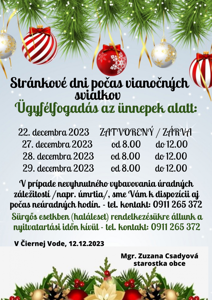 Stránkové dni počas vianočných sviatkov - Ügyfélfogadás az ünnepek alatt