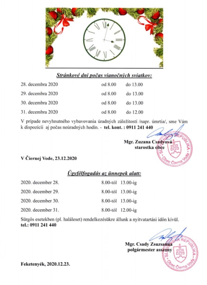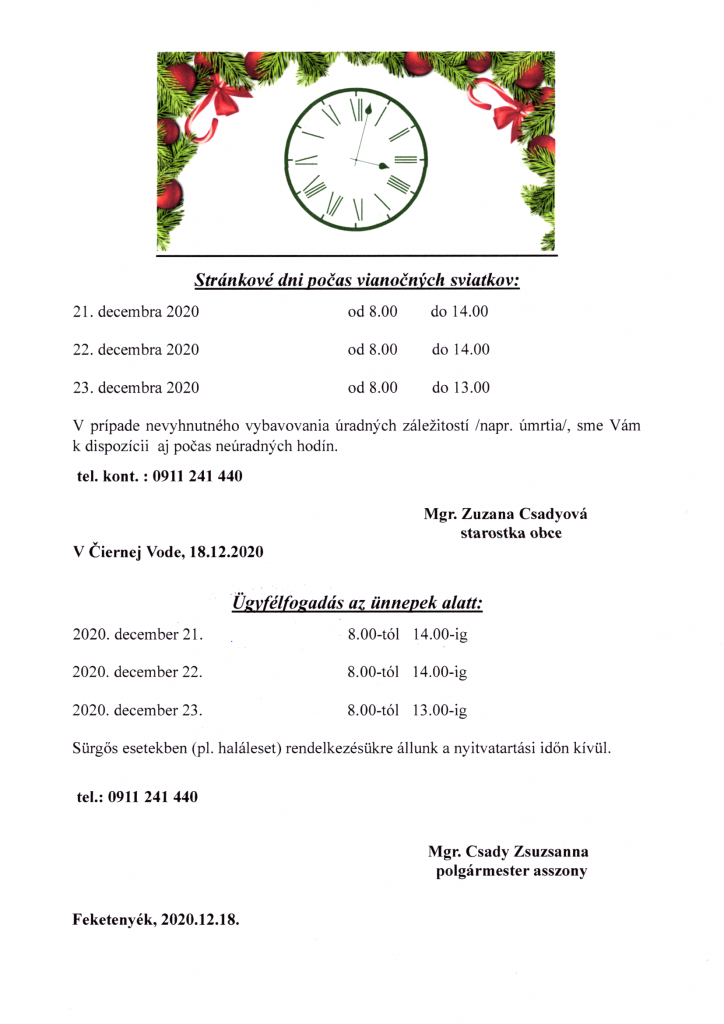 Stránkové dni počas vianočných sviatkov - Ügyfélfogadás az ünnepek alatt 1