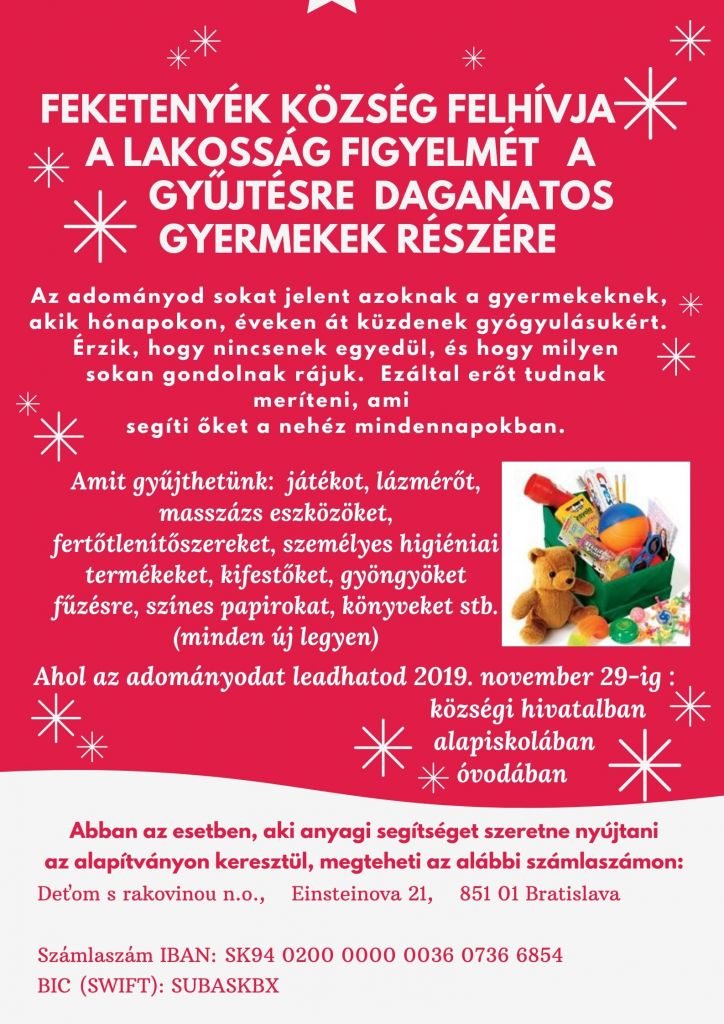 Feketenyék község felhívja a lakosok figyelmét a daganatos gyermekekért folytatott gyűjtésre