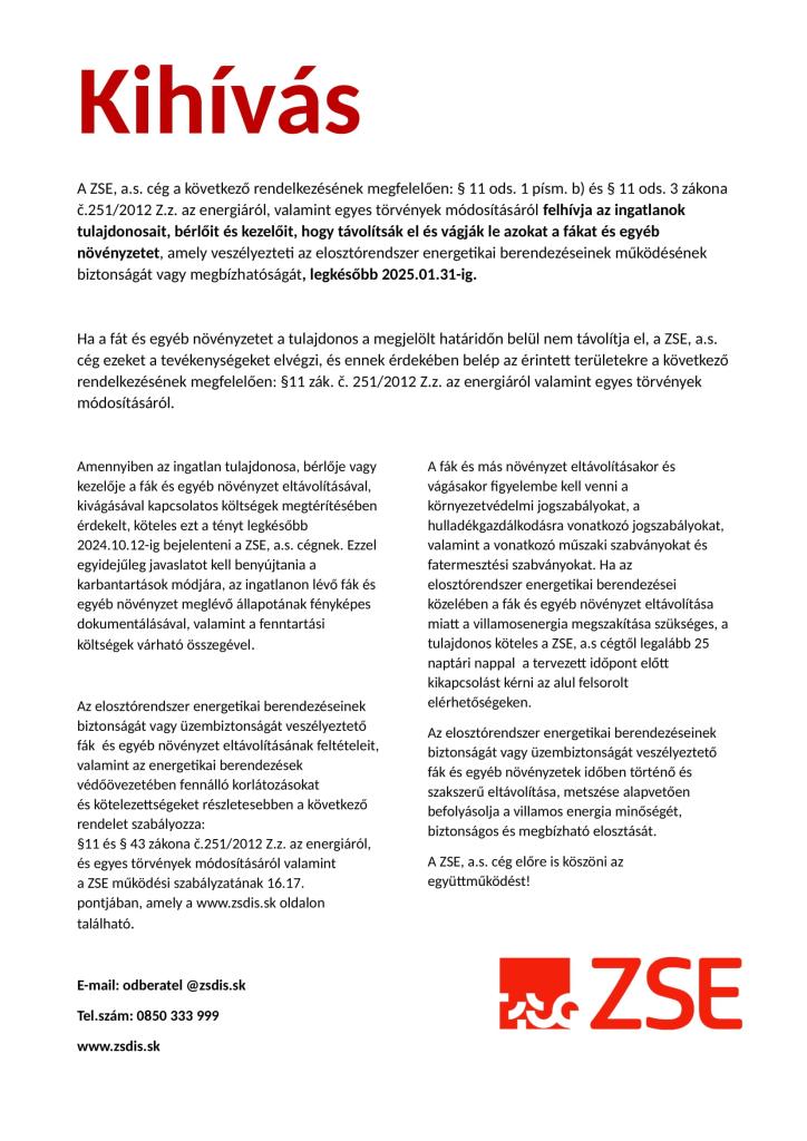 Oznámenie - Közlemény
